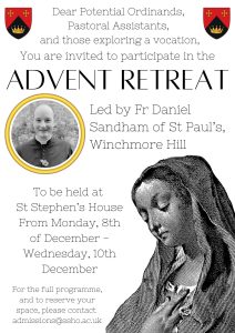 Throughout the academic year, the College invites potential ordinands, pastoral assistants, and those exploring a vocation to join us for retreats with our community. These are often shared on our social media pages. Follow us on Facebook to stay up to date with St Stephen’s House news and events.